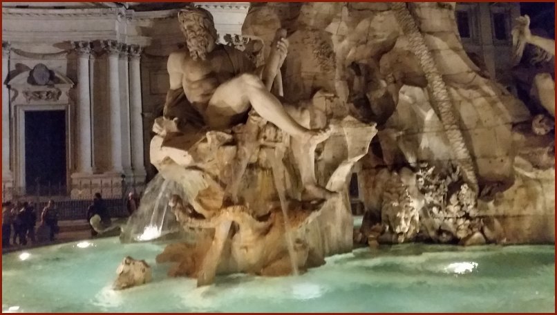Bernini�s famous "Four Rivers Fountain" sculpted in marble. The fountain represents the four continents where Papal