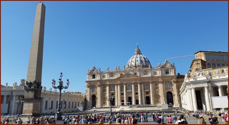 St. Peter's Basilica as seen from St. Peter's Square. The square, like so many things in Rome, was designed by Bernini.