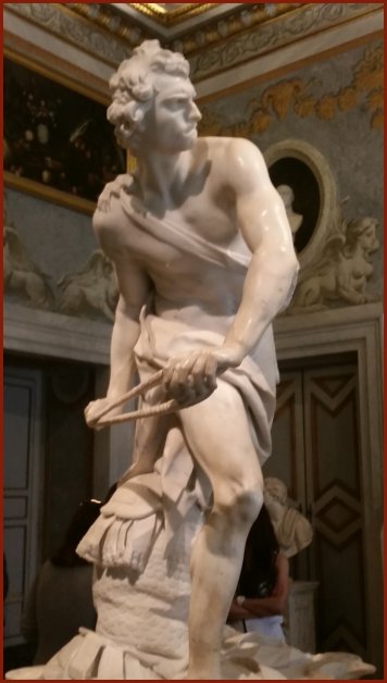 of David. Unlike earlier sculptures of David (like Michelangelo's) this version conveys bodily movement as well as