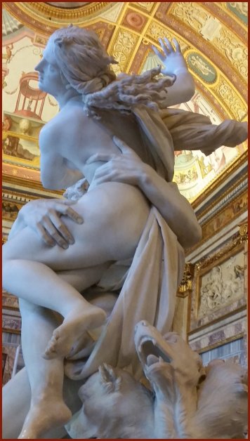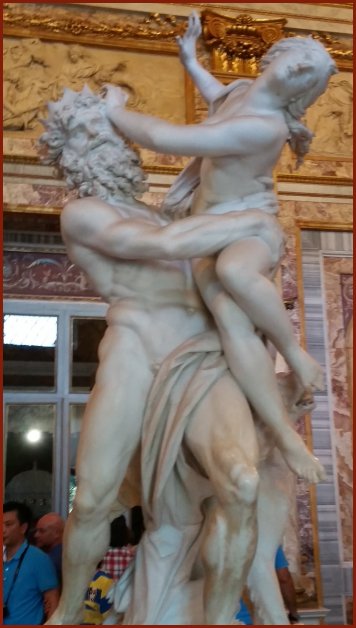 "Pluto and Proserpina" at the Borghese Gallery. Based on ancient Greek mythology. Also known as "The Rape Of