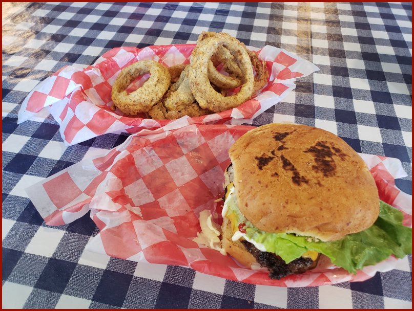 This is my (and was Dad's) favorite burger anywhere. The cafe is nestled deep in the woods, not far from Luckenbach.