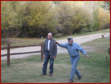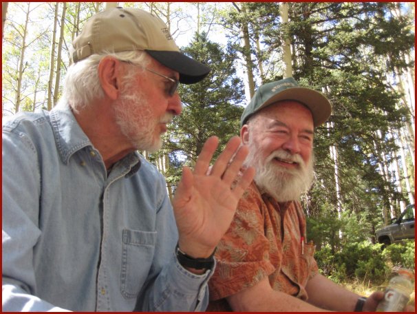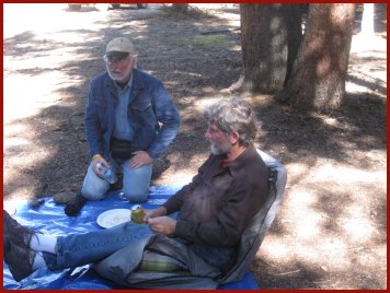 Chuck (left) and Dan having a chat under the Aspen trees at the Old Pass