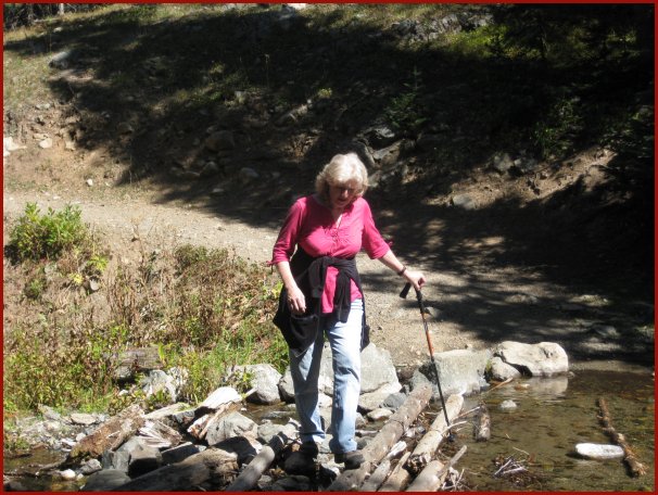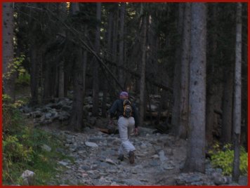 Judy hiking up the trail to Middle Fork Lake