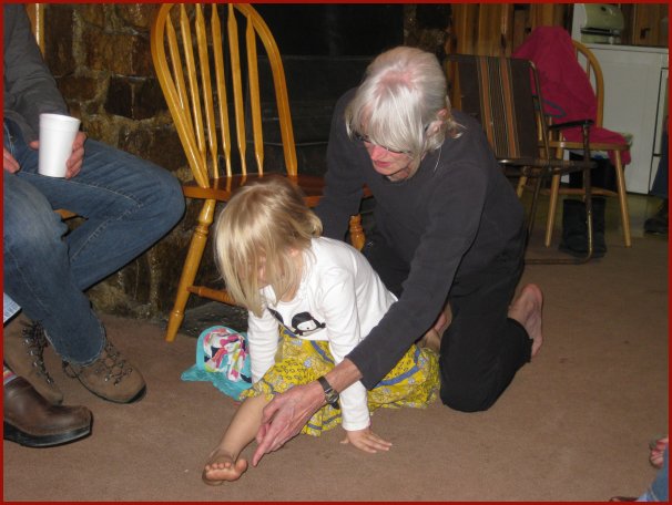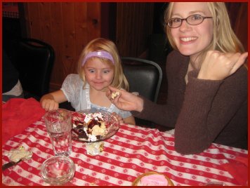 Eating at Texas Reds Steakhouse and then walking back to the cabins. Dad was kind enough to pick up all our