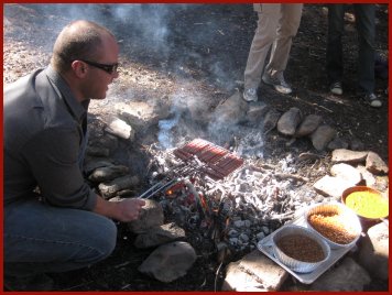Having a hotdog cookout at Midnight Meadows