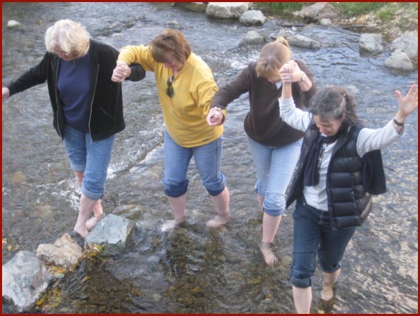 the river the old fashioned way - it's more fun to splash through it!