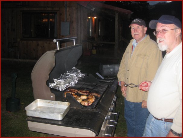 Stan & Tim baking some fresh trout and grilling chicken & sausage. It was a terrific meal.