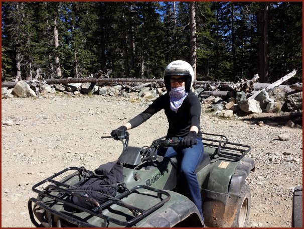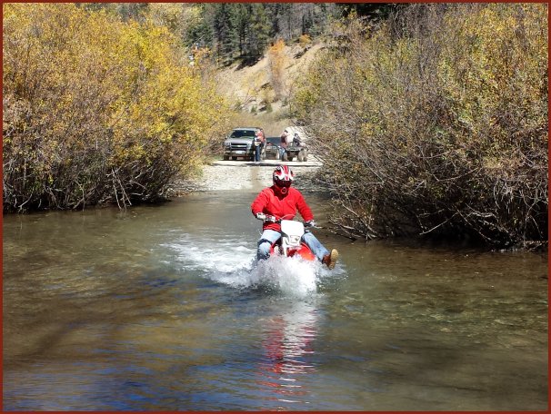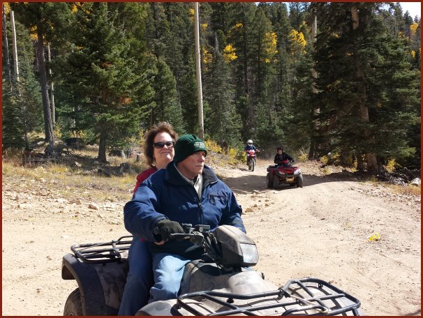 Tim & Debbie (with Dad and Chuck following) going up the Greenie Peak trail en route to the three hard motorcycle hill