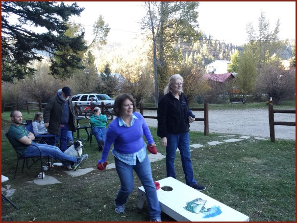 Debbie & Judy playing Corn Hole. Chuck is still the reigning Washers champ.
