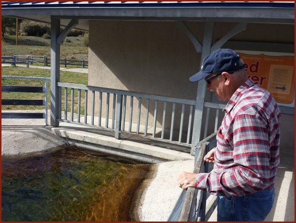 Tim at the Questa Fish Hatchery. There were some big trout swimming in those ponds!