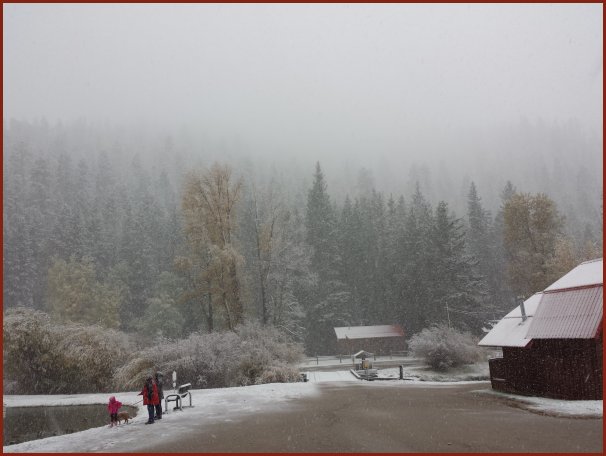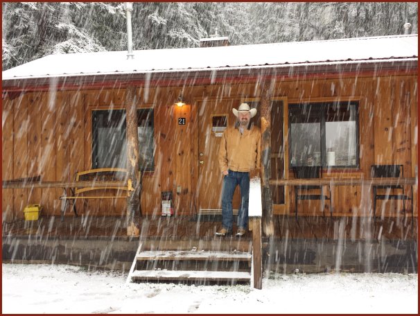 We barely made it back to the cabins before a snow storm nailed Red River. It was accompanied by loud claps of thunder