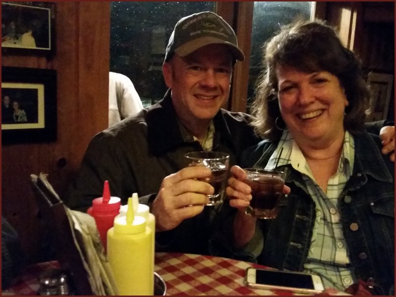 Me & Debbie listening to live music at the bar at Texas Reds restaurant