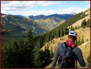 Chuck snapped this picture of me & Trevor at Foster Park just down from the Old Red River Pass. The Aspen were