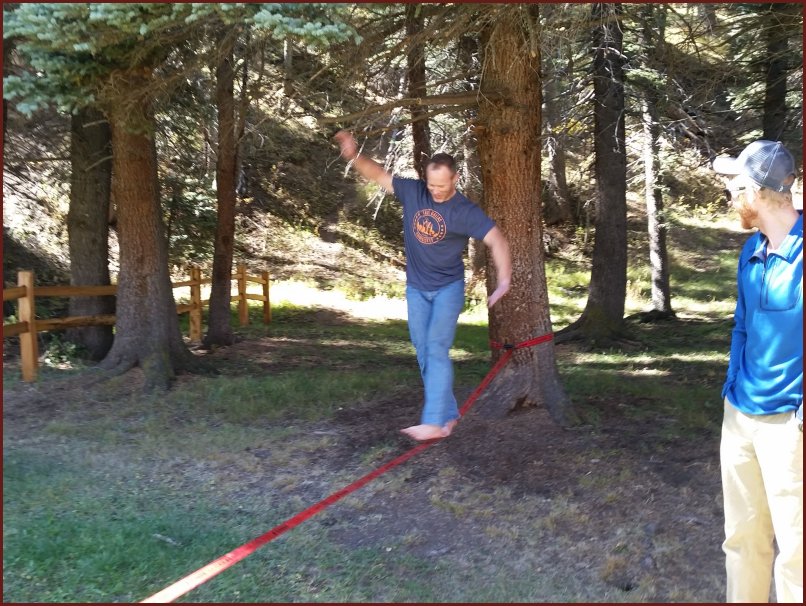 Trevor on Daniel's "slackline". That thing was as challenging as a Zobrist Cube.