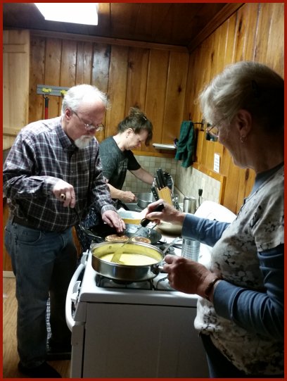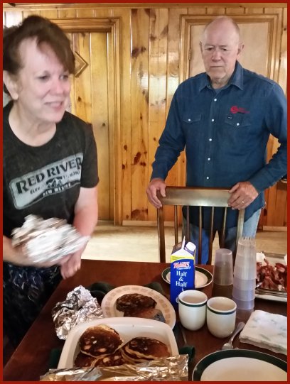 Due to the rain, we moved the hamburger cookout inside mine & Jason's cabin. Oh, and then most of Red River lost