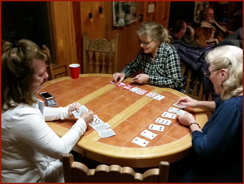 The gals playing double solitaire in mine & Jason's cabin - they are very good.
