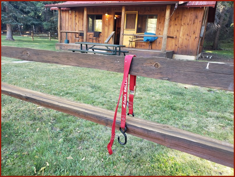a dozen red straps hanging from it. We didn't trailer any dirt bikes or 4-wheelers this year, so we