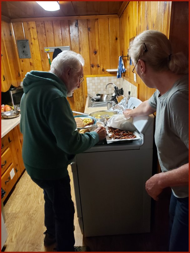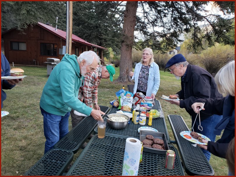 The hamburgers were delicious at the cookout near our cabins. And Chuck's potato salad was