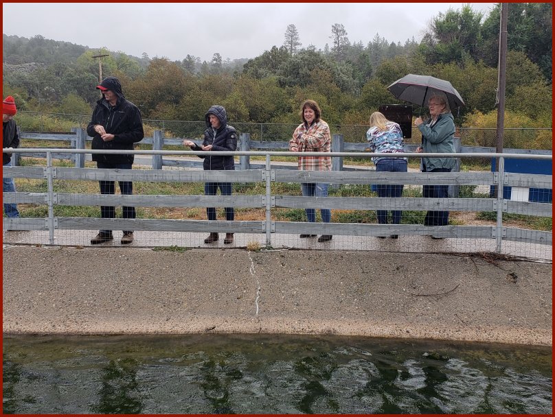 It was a bit rainy this year at the Red River Fish Hatchery, but it was still a hoot. They have fish pellets in quarter-operated dispensers - and the