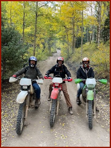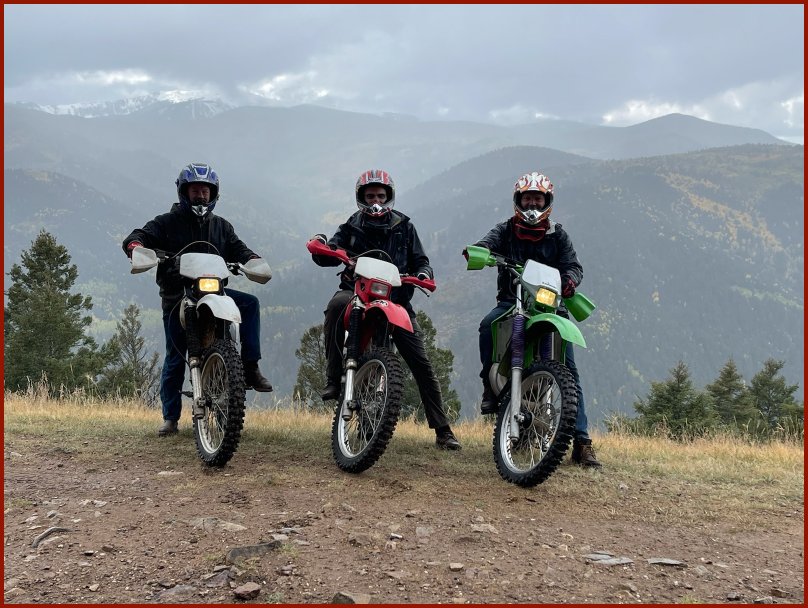 Brad, Jason, and Kent at the Old Pass. It was so nice riding dirtbikes with Jason and Kent - we first rode in the Red River area 45 years