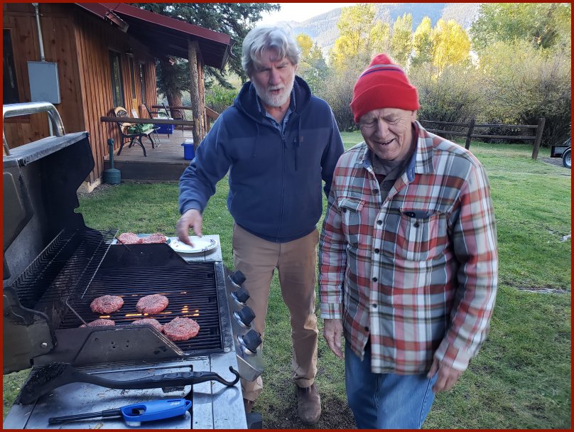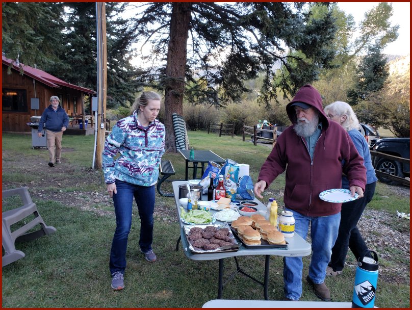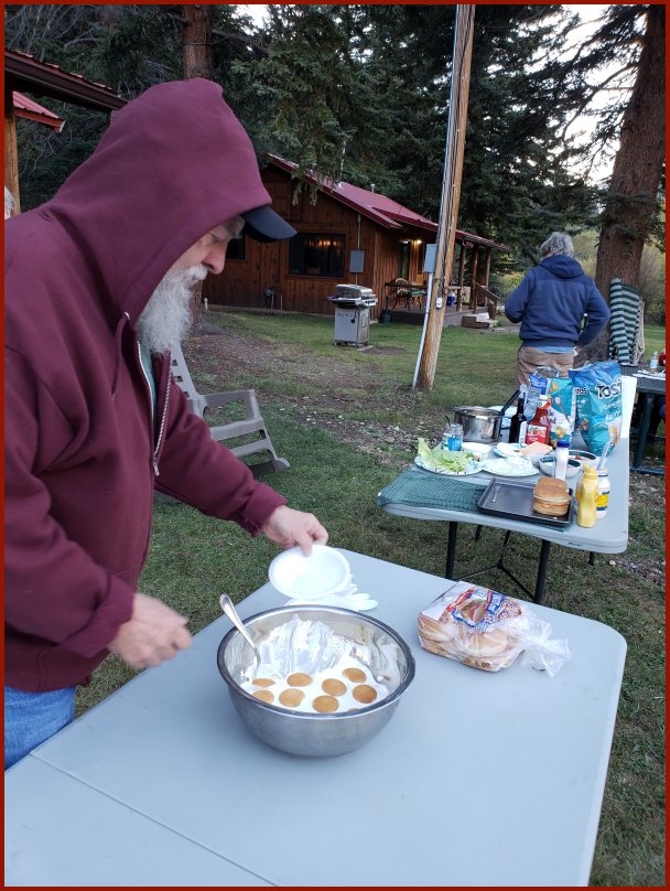 Chip & Tim did a great job cooking the burgers for a cookout near the cabins. Chuck made his delicious potato salad for it!