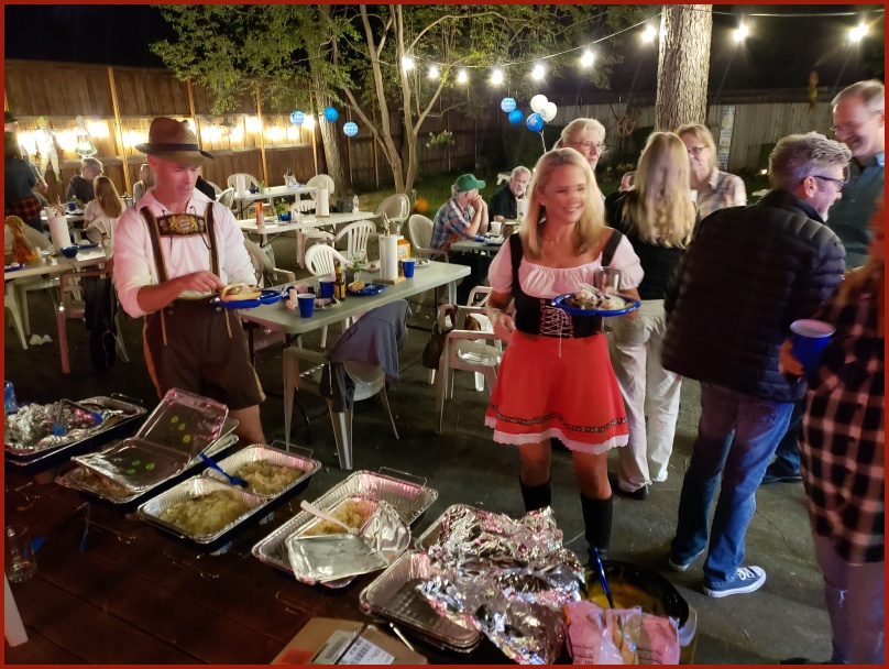The brats, sauerkraut, grilled onions, potato salad, pretzels, chocolate cake, etc. were all delicious.