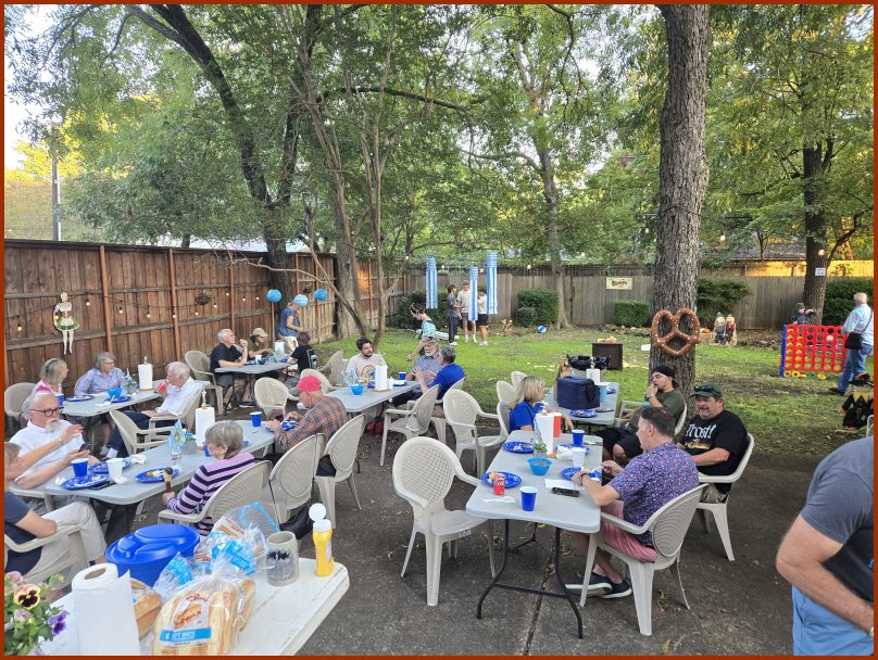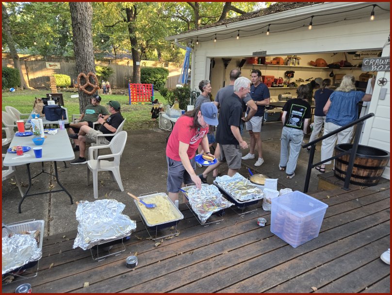 It was unseasonably warm for mid-October in Dallas. The high that day was 93, which was nearly a record. But my pecan trees provided welcomed shade. And after the sun sat, it was actually quite pleasant. Last year, it was cold & rainy for the Oktoberfest party. This year, it was hot & dry. Either way, we always manage to have some fun.