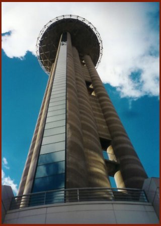 top of Reunion Tower. Tammy took the neat picture looking up the tower. At